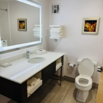 Habitación accesible para movilidad y audición con cama king size y bañera