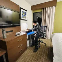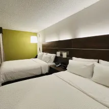 Convenient, staff is always nice and friendly. Beds are sooo comfy. But the pillows! They’re the best!