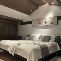 El patio es pequeño y exquisito, las plantas en macetas del paisaje son muy agradables a la vista y hay muchos elementos de caligrafía y pintura. El tipo de habitación dúplex mejorada de la habitación con cama tamaño king (cama arriba y baño abajo, tatami) es muy distintivo, la ropa de cama y la bañera son muy buenas, pero el baño está en la planta baja, lo que es un poco incómodo para lavarse y levantarse por la noche, etc. Además, el aire acondicionado es un poco ruidoso.