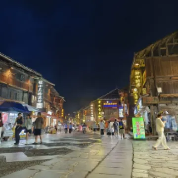 Todas las fotografías fueron tomadas en la habitación, que es de doble capa, con vidrios de piso a techo y ventanas. La vista del pueblo es hermosa de día y de noche. La otra habitación común no tiene vista. Por lo tanto, se recomienda Gasta más dinero y elige una buena habitación. Lo único que quieres es divertirte cuando viajas. Bajando una pequeña pendiente está la calle peatonal, donde los dong cantan canciones, celebran fiestas de fuego y disfrutan de bocadillos. Compré un pequeño colgante, cuando llegué a casa encontré que el relleno era terciopelo moxa, que fue cosido por una anciana puntada a puntada, y la tela también era batik.