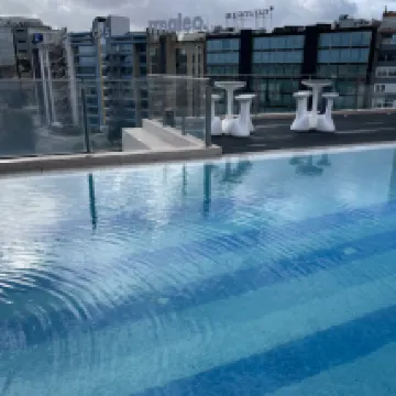 Excelente ubicación, habitaciones excelentes, camas cómodas. Tuvimos un problema cuando estuvimos allí: el ascensor al bar de la piscina no funcionaba. Así que teníamos que subir siete tramos de escaleras o ir a recepción, donde usarían su tarjeta llave para que subiéramos a la planta 7 y subiéramos a la 9. La piscina estaba genial, pero a veces el servicio del bar era un poco deficiente y uno o dos de los que atendían parecían desanimados. Una pequeña sonrisa habría estado bien. A diferencia del servicio de desayuno, donde el señor y la señora que nos acompañaron a la mesa fueron muy amables y serviciales. En resumen, un buen lugar para alojarse.