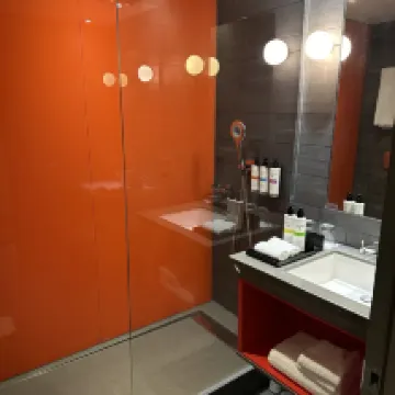 En segundo lugar, el hotel no es muy antiguo, pero hay óxido visible en el grifo del lavabo y el desagüe del baño. ¡Y el cuarto de ducha no tenía puerta, igual que el Novotel en el que me alojé en París el año pasado! ¡Al ducharse se salpica mucha agua en el suelo alrededor del lavabo! ¿Todos los baños de los hoteles Accor en Europa están diseñados por la misma empresa? ! El cabezal de la ducha solo tiene un modo, la presión del agua es insuficiente y no hay un inodoro inteligente, ¡así que no puedes tirar de la cadena! El diseño de los enchufes junto a la cama también es problemático, ya que no tienen en cuenta el hecho de que los huéspedes internacionales pueden utilizar adaptadores.
