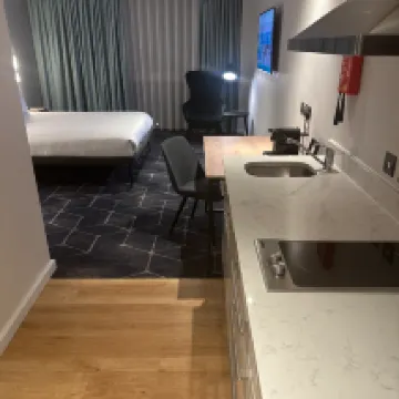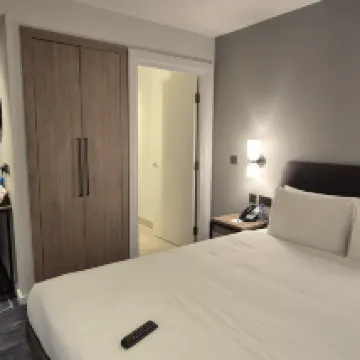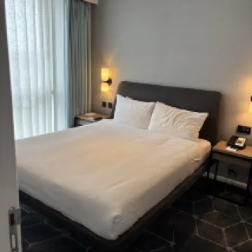 La ubicación es muy conveniente, a unos pasos del centro comercial Westfield. A menos de 10 minutos a pie de la estación Stratford, te sientes seguro al caminar de regreso por la noche. La habitación es espaciosa y ordenada. El colchón es un poco blando para mí, pero aún así es aceptable. El personal es amable.