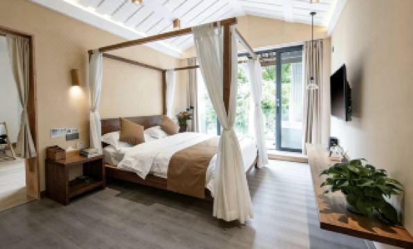 Habitación con cama grande y terraza