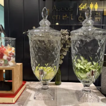 1️⃣ Había dispensadores de agua y dulces disponibles en la entrada del vestíbulo.