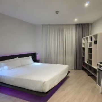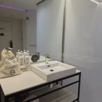 Muy práctico y funcional al lado de la Puerta del Sol. Genial la cafetería abierta 24 h donde te puedes servir bebidas, galletas, fruta… También hay un restaurante en la terraza, que aunque no es del hotel, es muy cómodo