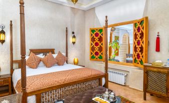 La habitación estaba excepcionalmente limpia, hermosa y exquisitamente decorada, incluso lujosa. Abdual, el personal del hotel, fue increíblemente amable, educado y siempre dispuesto a ayudar. Aunque llegamos tarde debido a un retraso en el tren, fue increíblemente servicial y superó todas las expectativas. La Medina en sí era un laberinto, pero cuando le preguntamos cómo llegar, no solo nos lo explicó con paciencia, sino que incluso nos guió por las secciones más complejas. En resumen, nuestras dos noches en el Tara Palace fueron las más agradables y placenteras que hemos tenido en Marruecos.