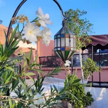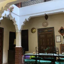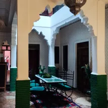 La ubicación del hotel está muy cerca de la Plaza de la Ciudad Vieja, pero no es ruidosa. Mi vuelo fue cancelado temporalmente y mi llegada se retrasó dos días. El jefe fue muy comprensivo y cooperativo y me ayudó a trasladar mi alojamiento durante los siguientes dos días al hotel Yammi de al lado. ¡El servicio en ambos hoteles es muy bueno! La habitación está llena de estilo marroquí, limpia y ordenada. El desayuno se sirve en el jardín de la azotea, ¡lo cual es muy entretenido! También muy rico.