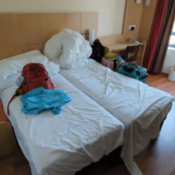 La zona cercana a la estación de tren es muy caótica. Las instalaciones del hotel son aceptables, pero se vuelve ruidoso a partir de las 7 a.m. Lo más molesto es que hay un cargo extra por guardar el equipaje al final. Cuesta 12 euros por 12 horas para una caja grande. ¡No hay opción por menos tiempo! ¡Es simplemente un robo! ¡Esta experiencia es muy, muy mala! ! !