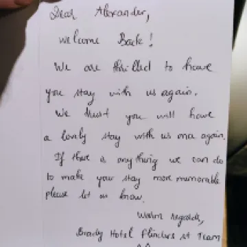 Respuesta del alojamiento: ¡Gracias por sus amables palabras! Nos alegra mucho saber que su experiencia con nosotros fue una vez más increíble. Nuestro objetivo siempre es que nuestros huéspedes se sientan bienvenidos, y nos complace que la tarjeta manuscrita haya hecho que su estancia sea aún más especial. Agradecemos sinceramente su continua lealtad y esperamos darle la bienvenida de nuevo al Brady Hotel Flinders Street la próxima vez que visite Melbourne. Atentamente, Kelly, Brady Hotel Flinders Street