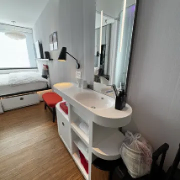 Отличный отель! Очень яркий, стильный, современный, наполненный техническими удобствами. Оценили двойные шторы, сантехнику, управление светом. Белье идеальное! Чистота. Завтрак отличный, если представится возможность, то снова выберем этот отель.
