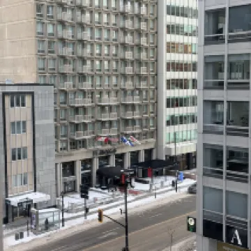 El hotel está en una excelente ubicación, muy cerca de DT, con una estación de metro y autobús en la planta baja, ideal para amigos que viajan a Montreal. El ambiente general del hotel es bueno, el servicio de recepción es entusiasta, la habitación está poco iluminada, las cortinas no se pueden correr, solo cortinas opacas, las cortinas gruesas son para decoración, el hotel está cerca de la calle y el ruido es fuerte por la mañana.