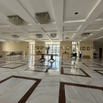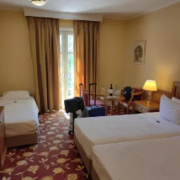 El hotel está un poco alejado de la ciudad. Es un complejo y hotel de conferencias con un gran patio y restaurante.
