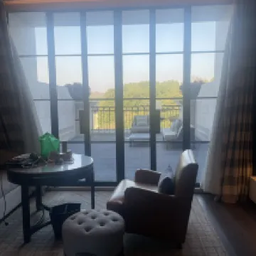 This hotel is idyllic and you will definitely relax. Whoever designed these rooms should win an award. It's one of the most stunning interiors that I've ever seen for a room. It's absolutely gorgeous. The service is pretty good. There were minor issues with communication at the front desk as I had paid a deposit on the app and they had me pay another deposit there. And then when I booked out, there was a bill again. But we eventually cleared it out. It was just a little bit unclear from the app side. The view, I asked for a nice view. This was something that I asked for but I don't know if they were fully booked. The view that I got wasn't great. I just watched cars coming and going the whole time. So I would have wished for a different view if it was possible. The food was very lackluster. I did not go out. I ordered two rooms and it was very expensive. I paid 68 Chinese Yuan or RMB for oats and 68 for a cup of tea. The oats were very, very watery. I couldn't eat it because that much dairy wouldn't be great. The tea was basic. I ordered a salad the previous night. It was around 38 RMB. Not too expensive but it had no dressing. So the food, I would just go out to eat. Don't bother to order into the room. All that saying, the room was beautiful. It was clean and definitely relaxing. Some lady, I asked for a HDMI cable and she brought it for me. So the service isn't bad either. So the only thing that I can really say is don't get room delivery. Other than that, really great.