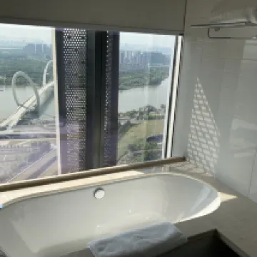 It couldn’t be better. Amazing room with the best view of the Nanjing Eye bridge, sunset and river. Huge bathroom also with a view. The bed is comfortable, the staff is friendly, breakfast supper with many options. I wish I could stay longer there.