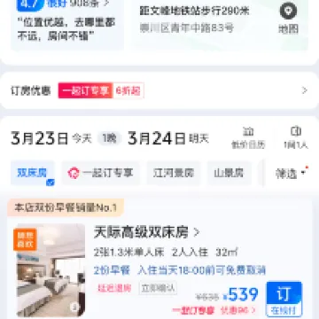 Vista incomparable al río de 270 grados, la habitación es bastante grande. Justo encima de Gongnongluo, al lado de Hao Wen. El desayuno incluye algunas especialidades de Nantong, como los fideos Yangchun. La actitud del servicio es buena y hay souvenirs de frutas.