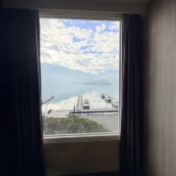 You want to book this hotel for the location: unbeatable views of the lake and evening entertainment on the harbor. You get amazing view in the am and sunset time is very pretty too. It is conveniently 2min away from sun moon lake bus stop.