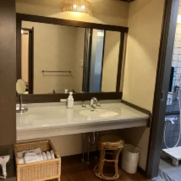 La ubicación está junto al Parque Kioto, lo cual es muy conveniente. Hay estacionamiento gratuito para tours en auto. El agua termal es cristalina, el desayuno es único, la habitación de estilo japonés está limpia y bien cuidada, y hay dos sillas en la habitación. Sentarse a tomar un té es una experiencia especial. 👍