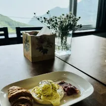 Jiufen is a very popular tourist destination with great views, however there are very few hotels in the area, most of the places here are all basically B&Bs. For those people who are interested in that kind of experience this is a great option. The view is great, especially from the "modern" room, but there is also a nice view from the common areas and the balcony. Reocmmend that you try to go on a nice day because then you will get more value from your stay, as there isn't much else to do around the b&b and you would probably be there primarily for the view. The staff are nice and speak good English. They also serve a Western style breakfast for free, which is convneient as there aren't any restaurants in the area. But you can walk to a bus station in about ten minutes that takes you into Jiufen so overall it's pretty accessible even without a car. Just remember it's not a hotel so you should have expectations of living in someone's house and with other people living there as normal.