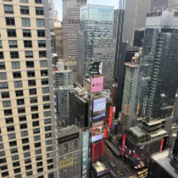 El hotel está situado en Times Square, lo que hace que viajar sea muy cómodo. El tamaño de la habitación del hotel es bueno considerando la ubicación.