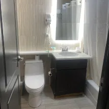 Un hotel de dos estrellas con calidad de alojamiento media. Hay un autobús Q25 en la entrada del hotel que te lleva a la estación de metro, lo cual es una ventaja. La presión del agua es muy baja y solo se puede lavar lentamente. Cuesta más de 100 dólares por noche, lo que también es una ventaja.