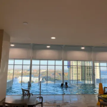 Cuando llegamos al hotel, la recepción sabía que éramos unos amigos celebrando el Año Nuevo chino juntos, así que tomaron la iniciativa de ascendernos al piso 49. La vista era realmente genial. La habitación era grande y limpia. Por la noche comimos en el hotel de abajo y también estuvo muy bueno. Los niños reservaron la piscina del hotel y se divirtieron mucho. La piscina estaba muy limpia y el otro lado era todo de cristal, por lo que se podía ver el paisaje a lo lejos. En general estuvo genial!
