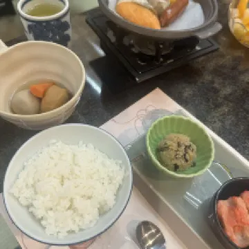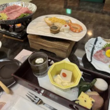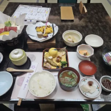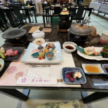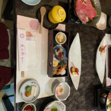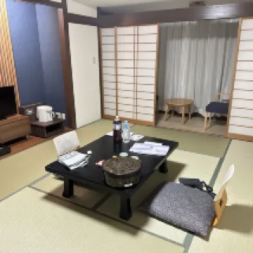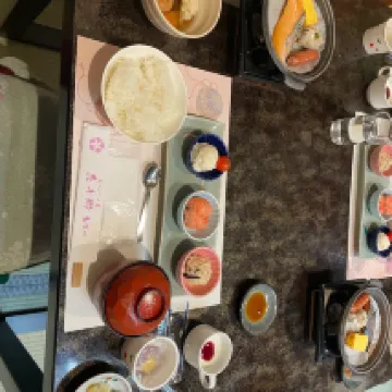 El nombre del hotel es Huaqianxiang y debes buscar este nombre en la navegación de Google Maps. Reservamos dos suites diferentes, ambas con balcones (plataformas de equipos), buenas vistas al río, ¡el desayuno y la cena del hotel fueron geniales! Además, recuerda hacer una cita con la recepción para el autobús de enlace después del check-out cuando hagas el check-in, de lo contrario te enfrentarás al problema de que no haya autobús disponible si esperas hasta el check-out. Es un antiguo hotel de aguas termales. Los camareros suelen ser amables. Nos informaron que la cena se había cancelado cuando hicimos el check in debido a una llegada tardía, pero luego llamaron a nuestra habitación para decirnos que la cena estaba lista y nos pidieron que comiéramos lo antes posible. Aunque el personal del restaurante nos instó a comer, tuvieron una buena actitud y siguieron pidiendo disculpas. De hecho, esto se debió a un error nuestro anterior, por lo que no podemos culpar completamente al hotel. Ellos también tienen horario de trabajo y de salida, así que también terminamos de cenar a tiempo según la hora de la cita, jaja. Gracias por el servicio del restaurante. En general es un hotel recomendable. Las habitaciones normales no son pequeñas y la comida y las vistas al río son una ventaja. Consejos: En resumen, debes ir al río Kinu durante el día, porque no habrá taxis si llegas tarde.