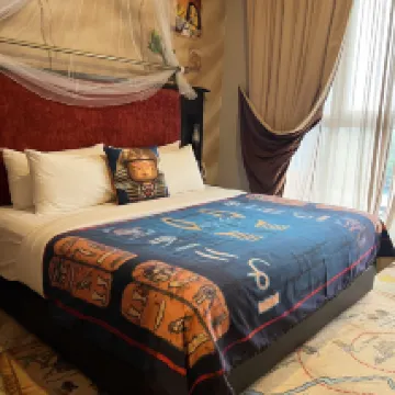 La ubicación es buena, cerca de la calle comercial, supermercados y comida rápida. Está muy cerca del parque Si compras un paquete, puedes ingresar al parque varias veces al día. Habitación temática, adecuada para viajes en familia.