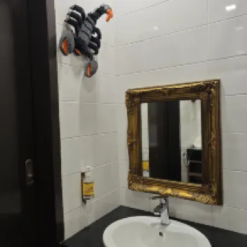 La habitación temática es adecuada incluso para 3 adultos y 3 niños (el niño más pequeño comparte la cama King). ¡El precio es un poco elevado durante las vacaciones, pero realmente asequible si puedes evitar lo primero! El inodoro es un poco sencillo, pero cumple su propósito con un lavabo para los huéspedes más pequeños.