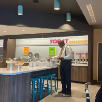 El Tru fue espectacular. Estaba impecablemente limpio y el personal es eficiente y amable. No hay restaurante en el interior, pero hay muchas opciones para elegir sus propias opciones de comida, refrigerios y bebidas. Cerca del Centro de Convenciones de Orlando y de muchos otros restaurantes y atracciones. Me quedaría de nuevo