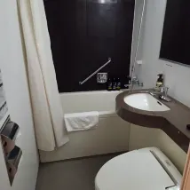 Fue un viaje que dejó buenos recuerdos con mi familia. El alojamiento estaba limpio, la ubicación era excelente y tenían todos los artículos desechables. El desayuno era sencillo. El personal siempre fue amable y había una máquina de cambio de divisas dentro del hotel, lo cual fue muy práctico. Había una lavandería de monedas y un microondas en la primera planta. Sin embargo, el aire acondicionado de la habitación soplaba directamente sobre la cama y no se podía regular el caudal, así que me desperté con un ligero dolor de cabeza y un gemido. El agua caliente del baño no se podía regular, así que me di una ducha bastante caliente. El champú, el acondicionador y el gel de ducha que me proporcionaron eran productos Polar, y me gustaron tanto que quise comprarlos. La cama era suave y agradable.