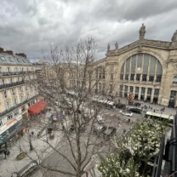 La ubicación es perfecta. Justo enfrente de la estación Gare Du Nord. 2 botellas gratis de cerveza, refrescos y algunos bocadillos fueron una ventaja. Sólo la habitación un poco pequeña. Bueno, lo sabíamos cuando hicimos la reserva. Un montón de restaurantes y cafeterías justo en las mismas calles que el hotel.