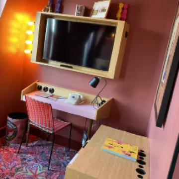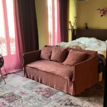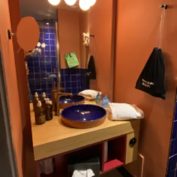 Me ha encantado la decoración de este hotel, el personal es muy amable, las instalaciones son súper bonitas y con un diseño elegante y disruptivo. Las camas son muy cómodas y yo cogí la habitación grande y era demasiado espaciosa, lo agradecí mucho en comparación con los hoteles de París así que la recomiendo muchísimo.