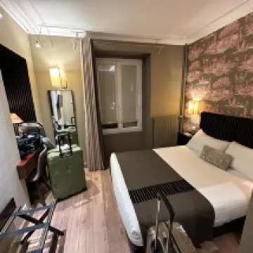 El hotel está en el Distrito 6, muy tranquilo. La habitación no es demasiado pequeña en Europa. La recepción es muy acogedora y el servicio es muy bueno. Se tarda unos veinte minutos en llegar andando hasta el Museo de Orsay.