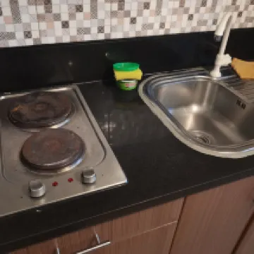 El televisor no funcionó, pero aparte de eso, quedé muy satisfecho. Pude calentar cosas en el microondas y me di una ducha caliente que me calentó y me hizo sentir renovado.