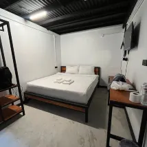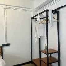 Es nuevo y hermoso. En el 1er piso hay agua, agua caliente, café y dulces. Se proporcionan toallas de baño, champú y jabón en la habitación. Sin embargo, hay algunas cosas que me gustaría que mejoraran. El lavabo es pequeño. Hay un balcón, pero no hay percheros ni perchas. Hay taquillas disponibles, pero no pueden ser utilizadas por personas individuales. Las sillas del vestíbulo del primer piso son de madera y duras. Creo que es una cadena de albergues cerca del aeropuerto Don Mueang.