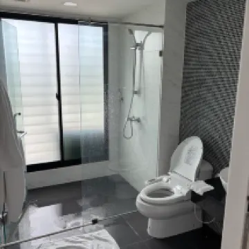 Сам отель приятный, небольшой, брал номер дуплекс, интересное решение, но непрактичное. Телевизор в гостиной, я а любитель смотреть тв с кровати, она на втором этаже. Магазины далековато, даже 7-11