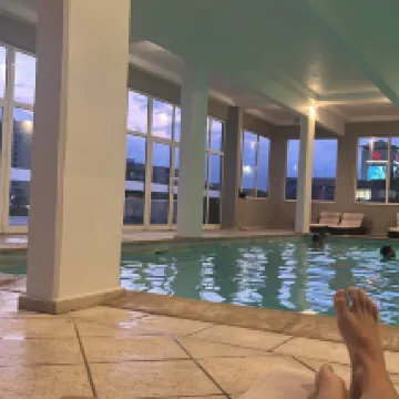 Había comodidades pintorescas como una mesa de billar y una biblioteca. La piscina era bonita y el jacuzzi y el gimnasio eran de buena calidad. Los aspectos más decepcionantes fueron el desayuno y el personal de la cafetería. No parecían motivados ni amigables y durante 4 días observamos que eran muy lentos para limpiar las mesas. No saludaron a los invitados ni parecían motivados en su trabajo. A menudo ni siquiera eran visibles durante largos períodos. La calidad del desayuno era mala y muy sencilla. El café en los termos siempre estaba frío al igual que los huevos y el tocino. Surtido de frutas muy sencillo. Simplemente había una atmósfera general de falta de motivación y atención al detalle. La ubicación era buena y el acceso a tiendas y servicios era justo.