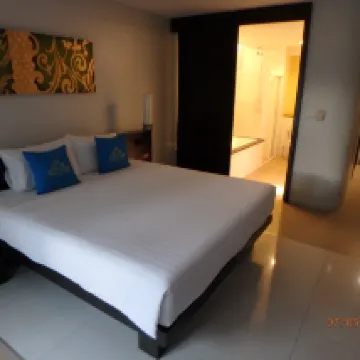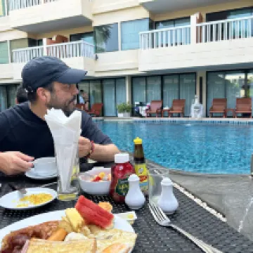 El hotel está cerca de la zona de bares de Patong y de la playa de Patong, una popular zona turística. El hotel tiene un ambiente de complejo. Reservé una habitación con acceso directo a la piscina. El personal de recepción se registró con entusiasmo. El personal de conserjería me ayudó a sacar mi maleta y tomó la iniciativa de llevarme a la habitación. Esta habitación tiene una pequeña terraza por la que se puede pasar. Vaya directamente a la piscina. Si no quiere nadar, también puede quedarse aquí. Hay dos sillas de playa colocadas en la terraza para tumbarse y relajarse. La habitación cuenta con suministros estándar, incluidas dos botellas de agua todos los días; el desayuno del día siguiente se sirve en la cafetería cubierta al aire libre junto a la piscina; mi estadía de dos noches fue cómoda y vale la pena reservar nuevamente.