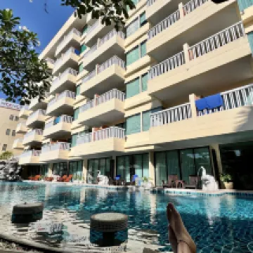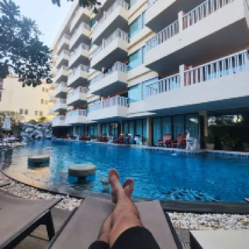 Complejo muy bonito, apartado (no directamente en la carretera), largo paseo hasta Walking Street y la playa (puedes tomar jeepneys, pero son exorbitantemente caros, alrededor de 200 a 300 BHT para un viaje corto dentro de la ciudad). Muy bonita piscina con hidromasaje; Gimnasia; buen desayuno: habitación bonita, grande y cómoda; Cuarto de baño: bañera muy bonita, ducha adicional, muy buena y potente; todo está en buen estado; ambiente agradable de hotel, público bien variado; El único punto débil: el wifi sólo funcionaba de forma intermitente (a menudo era necesario volver a iniciar sesión); La relación calidad-precio merece una nota de 1 (muy buena).