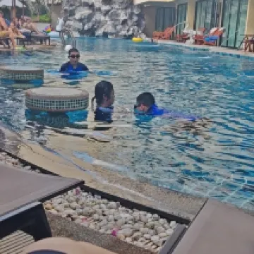 Es genial. La recepción habla chino y el desayuno también es bueno. A los niños les gusta mucho la sala de la piscina. Se tarda entre 15 y 20 minutos en llegar al mercado nocturno. La playa está a unos 15 minutos. Todo muy bueno