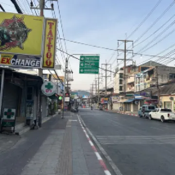 Este hotel está escondido en un pequeño callejón. Con el sistema de navegación, fue fácil encontrarlo; es un refugio tranquilo del bullicio. Las habitaciones son bastante amplias, aunque un poco modernas, incluso más modernas que los hoteles de Karon Beach.