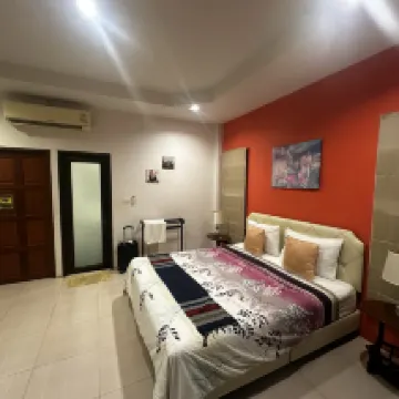 El hotel está muy cerca del aeropuerto. Las habitaciones son más bien como las de una casa particular, pero cuentan con los artículos de aseo básicos y aire acondicionado. Las sábanas parecían gastadas, pero para una estancia de paso, no hay problema. Nos pusimos en contacto con ellos por WeChat antes de la salida, y en cuanto aterrizamos, llamamos al propietario y vino a recogernos. Aunque en la descripción indicaba que el traslado era solo de ida, en realidad ofrecieron el servicio de recogida y vuelta al aeropuerto de forma gratuita. El propietario parecía serio, pero en realidad era muy amable y servicial. Incluso nos prestó motos gratis para ir a explorar, y usamos las motos durante cuatro horas sin que nos cobrara la gasolina. Al final, le dimos una propina en agradecimiento. Si solo planeas moverte por el norte de Phuket y te apetece ir en moto, alojarse aquí es una buena opción.