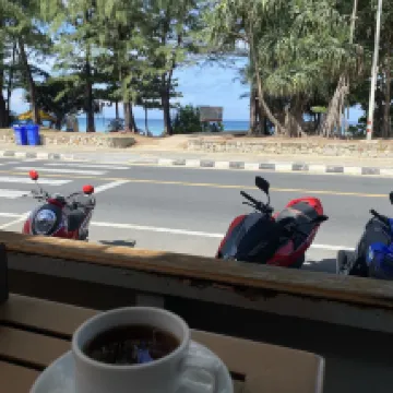 ¡Nos gustó el hotel! Hermosa zona, gran salón. Buenos desayunos. - verduras, frutas, bollería, tocino, arroz, pollo, caldo, jugos, café y una gran vista al mar desde el restaurante. Y el mar está al otro lado de la carretera. Si volvemos a Phuket, ¡elegiremos este hotel!