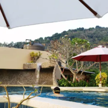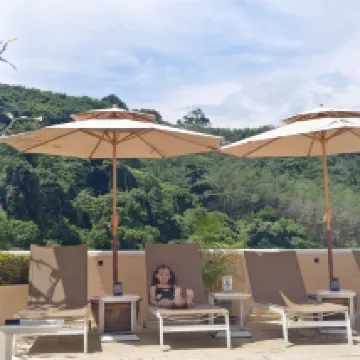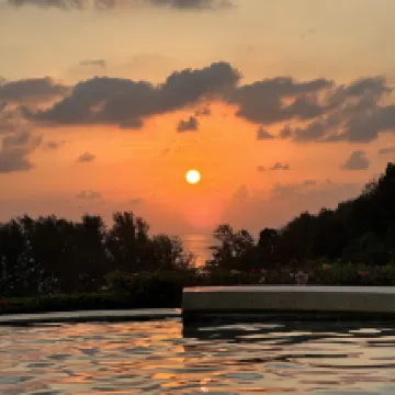Este tranquilo y relajante hotel es una joya escondida. Está situado en una ladera, así que incluso la piscina baja de la azotea, en un quinto piso, es increíble. Una vista increíble para ver la puesta de sol sin obstáculos. Puedes pedir bebidas y sentarte en la piscina a contemplar la puesta de sol. En los hoteles cerca de la playa es difícil ver la puesta de sol porque los árboles son muy altos, a menos que camines hacia la playa. Todo el personal es muy amable. El Sr. Chai, el gerente, es muy servicial. El spa del hotel es excelente y tiene precios razonables. A 15 minutos a pie de la playa de Karon, pero no hay problema, ya que el hotel ofrece transporte gratuito. El tuk tuk al hotel es muy práctico desde cualquier lugar. No te pierdas los mariscos del restaurante Chic Ann. Muy buenos y a precios razonables. Sin duda, volveré.