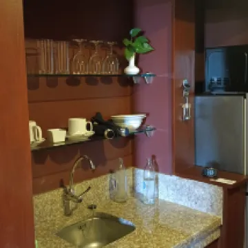 Preciosa experiencia. Nos pasaron a una habitación más bonita, lo que hizo que todo fuera aún más agradable. El personal fue atento, rápido y se comunicó muy bien. La habitación era grande y bonita. También disfrutamos de otras comodidades aquí, como la piscina en la azotea y la mesa de ping pong en el gimnasio, lo que hizo que la experiencia fuera aún más divertida.
