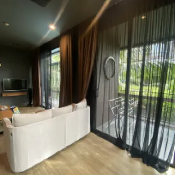 Reservé una suite de dos dormitorios, que es muy grande. Tiene piscina privada y un pequeño balcón compartido con la habitación de al lado. La cocina está totalmente equipada (pero no hay ingredientes, aceite ni algunos condimentos). Es muy conveniente recibir entrega urgente y comida para llevar. El chico de la recepción El servicio de presentación es muy serio. Si quieres ver el mar, te recomendamos ir a la playa de Kata Noi, está más cerca y no hay tanta gente.