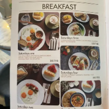 Al pedir el desayuno, hay un menú para elegir. Todas son combinaciones de desayuno clásicas. El sabor es sorprendentemente bueno. Puedes desayunar todo el día si tienes tiempo libre. que está en construcción, si puedes caminar, está a más de diez minutos. Hay fruterías y snacks en los supermercados, y también es muy cómodo tomar una cena sencilla.