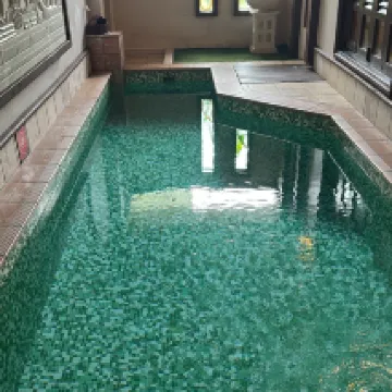 The pool was in need of repairs. The metal cover of the filter came off. The pool bed was sharp. Kids had a few cuts on their feets. The shower area beside the pool need a good washing too.
