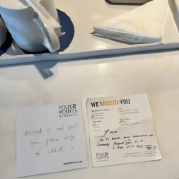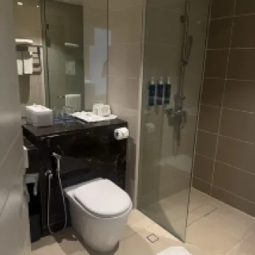 The room was clean but several issues made the stay disappointing: towels were worn and stained, cups weren’t properly cleaned. Despite being on the 8th floor, traffic noise was loud and persistent past midnight. These problems suggest a lack of attention to maintenance and guest comfort.